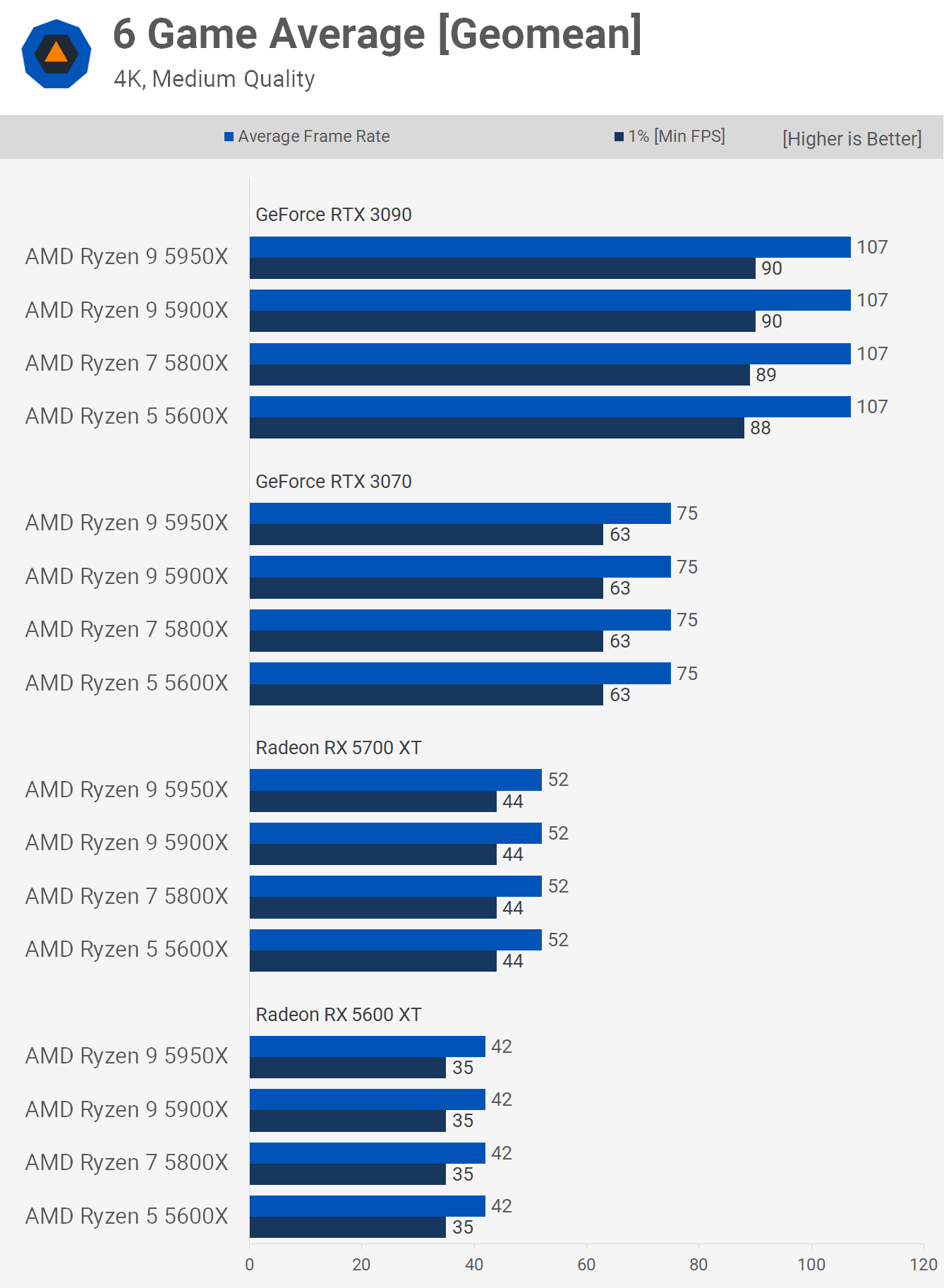 In this performance review we want to see how the Ryzen 5 5600X, Ryzen 7 5800X, Ryzen 9 5900X and R9 5950X compare in games using the GeForce RTX 3090, RTX 3070, Radeon RX 5700 XT and 5600 XT, using Ultra and Medium graphics quality presets at 1080p, 1440p and 4K.