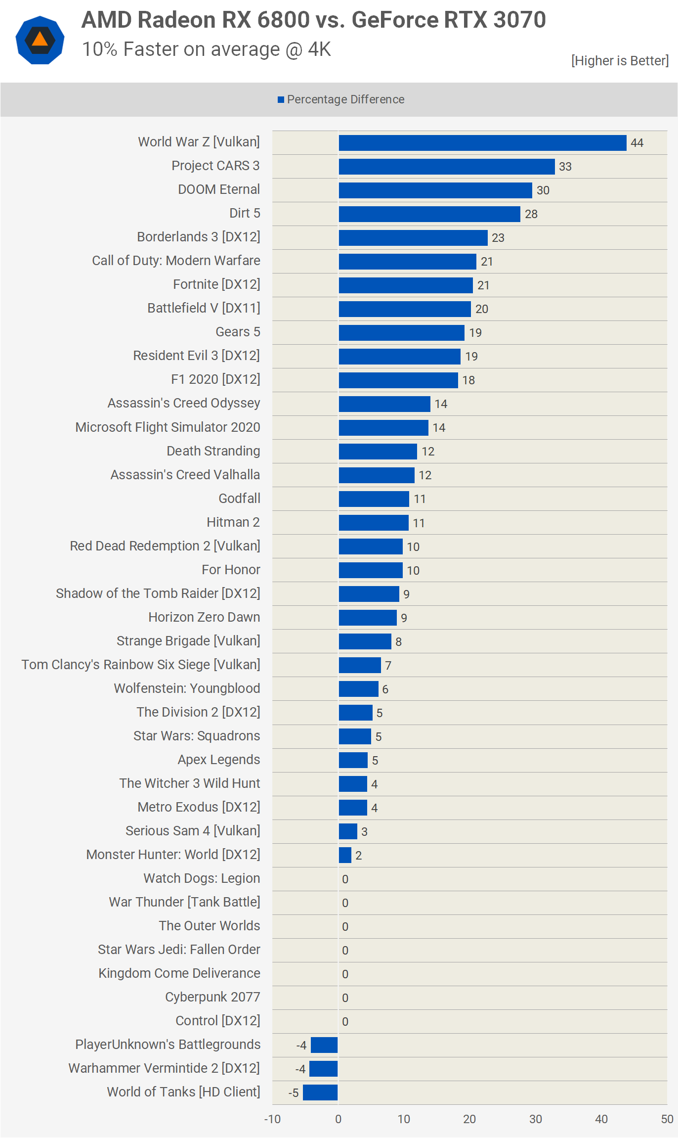 If we remove those titles the RX 6800 is 14% faster than the RTX 3070. That's not a massive difference, but it explains why the margin is less favorable here.