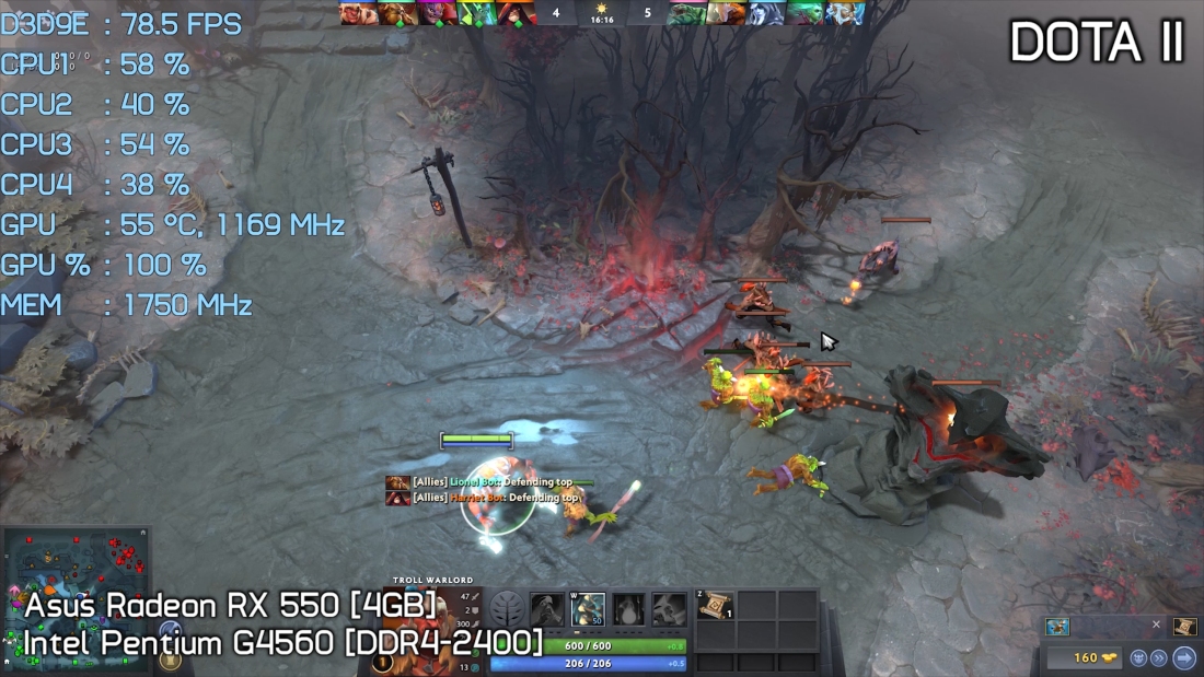 Dota 2 was also tested with the quality settings maxed out at 1080p and here the Pentium G4560 and Radeon RX 550 combo allowed for around 60-70fps, though at times did drop into the 50s.