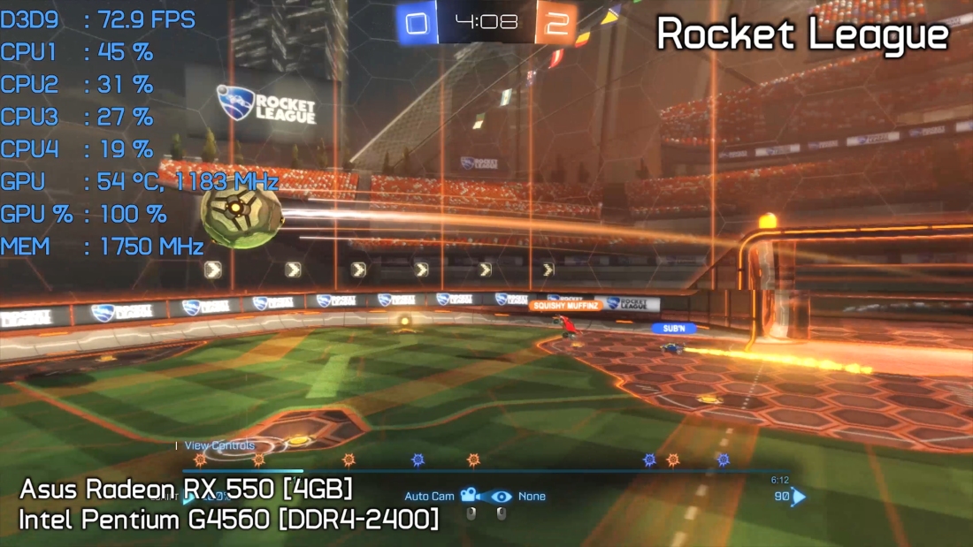 Rocket League was likewise tested with maxed settings at 1080p and this budget hardware combo maintained over 60fps at all times, often between 70 and 90 fps.