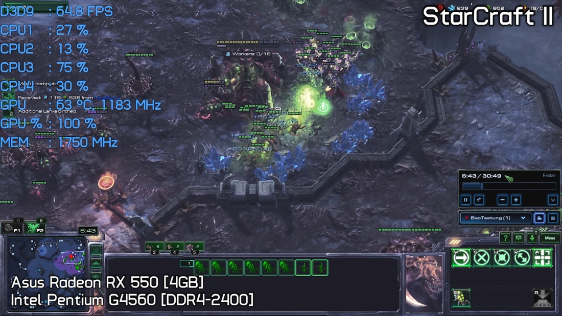 To test StarCraft 2 we watched a pro 2v2 match at normal speed and this simulates real-world performance quite well. We tested at 1080p using ultra quality (one step down from extreme) and that saw frame rates sitting around 80fps but occasionally dipping to 60fps when things got heated.