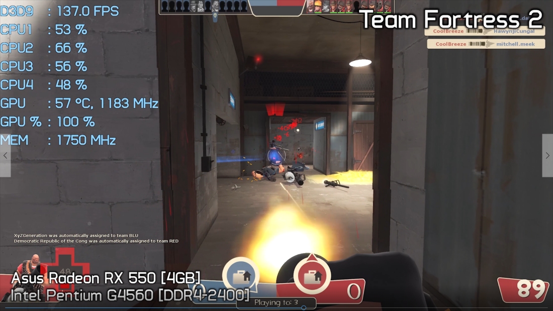 Team Fortress 2 was tested using the highest possible quality settings at 1080p, frame rates dropped as low as 100fps and would spike as high as 200fps. For the most part though frame rates were somewhere in the middle.