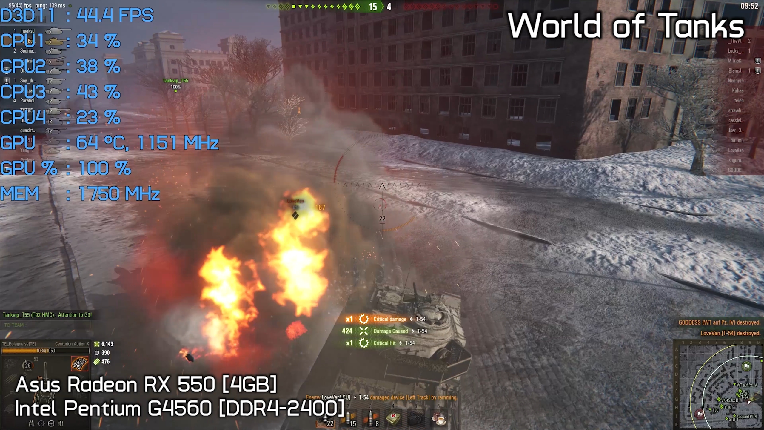 Maxed out at 1080p, World of Tanks played between 40 and 50fps, which resulted in smooth performance.